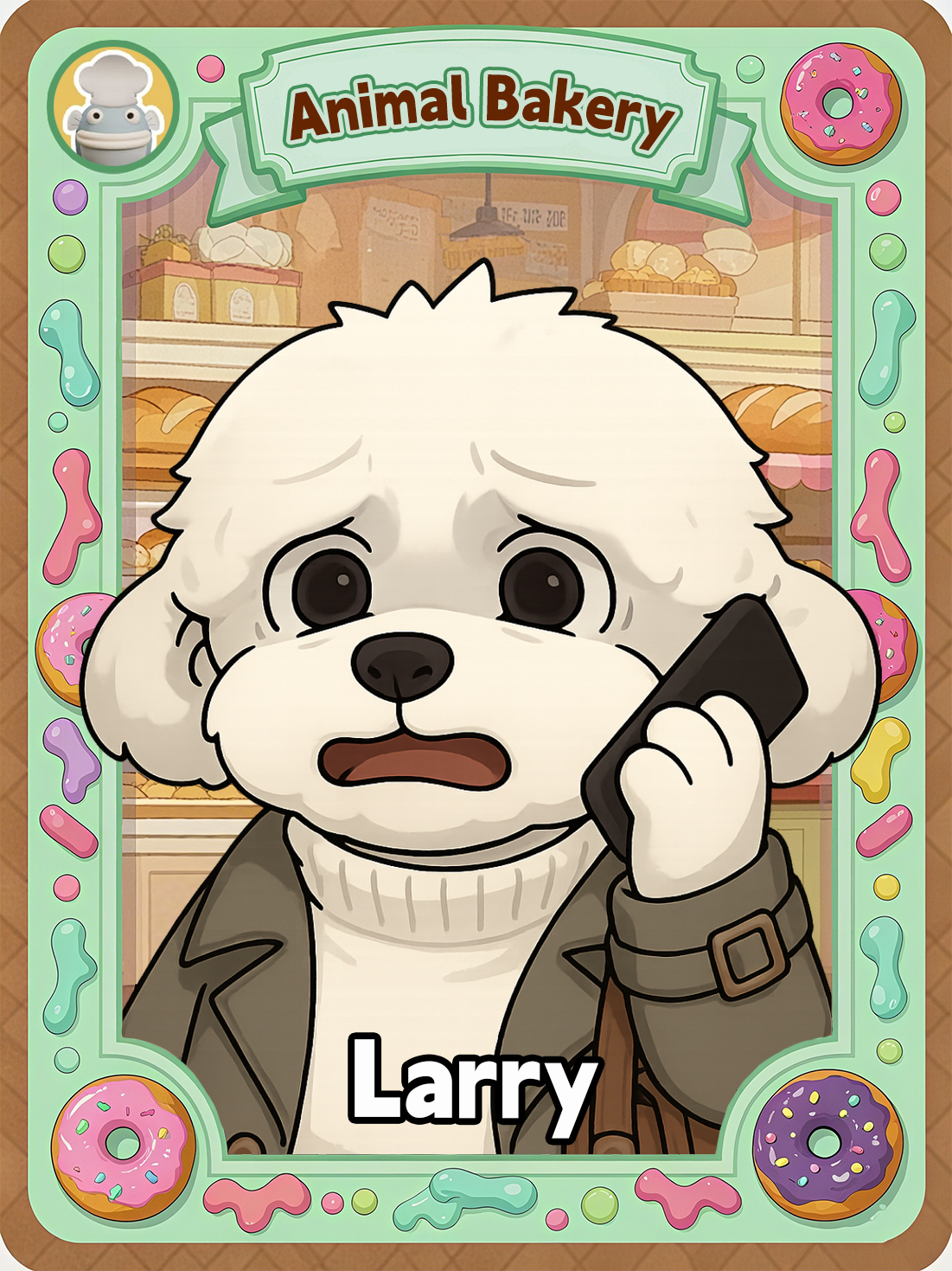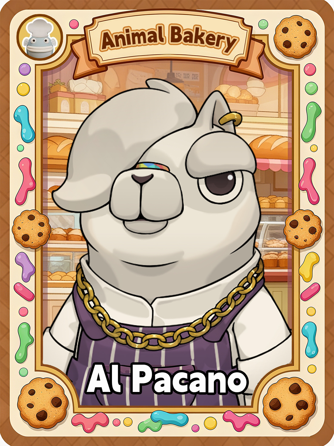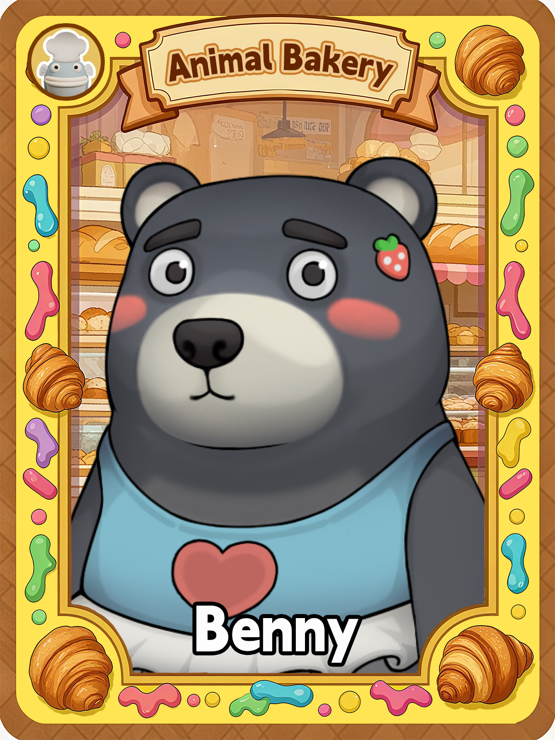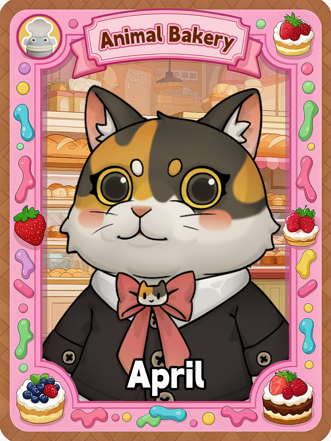 Animal Bakery is a lighthearted and fun simulation management game where players take on the role of an intern at the Roamville Police Department. Sent undercover by their superior to investigate a bakery run by a mysterious organization, players must balance their dual identities while managing the shop. The gameplay includes: - Upgrading the bakery - Unlocking new recipes - Acquiring new baking tools - Attracting unique customers By day, players run the bakery; by night, they leave the shop to carry out missions—serving both the police and the secret organization. The game blends cozy management with intriguing dual-role tasks, creating a charming and engaging experience. Al Pacano | Old Huang | Hobo Sheep | Hugh Wot | Common Tier | 36/50 units Benny | Jeffery | Rare Tier | 10/50 units Larry | Epic Tier | 3/50 units April | Legendary Tier | 1/50 units You can participate in the airdrop on X (@BesCARDGlobal) Track your collection on our【Dashboard】.